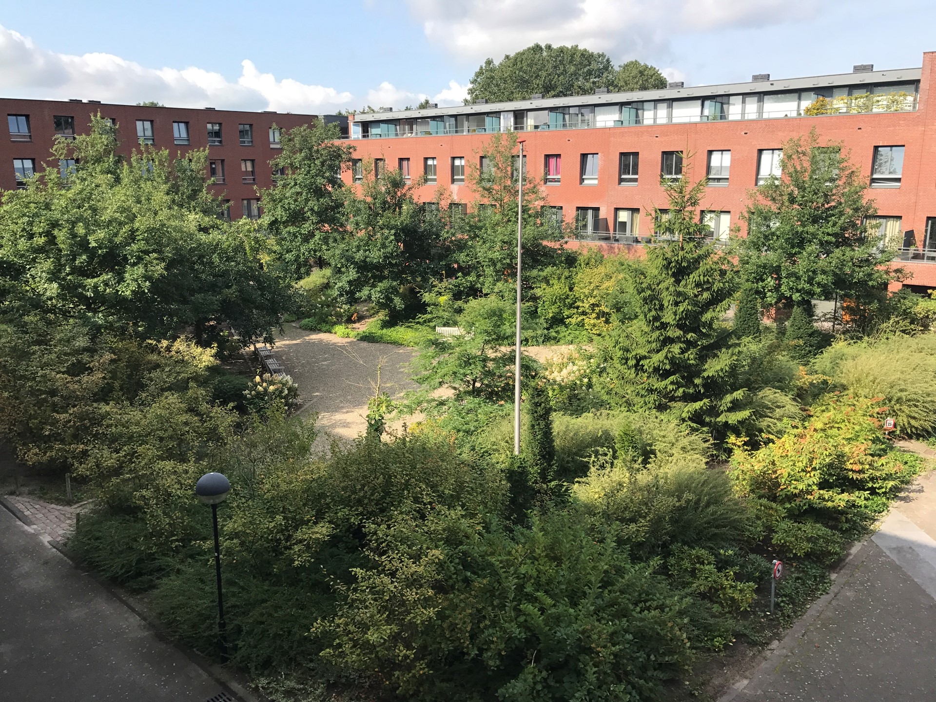 Vanuit de woonkamer heeft u een prachtig uitzicht over fraaie gezamenlijke binnentuin met diverse bankjes voor gebruik door de bewoners van het Boeimeerhof.