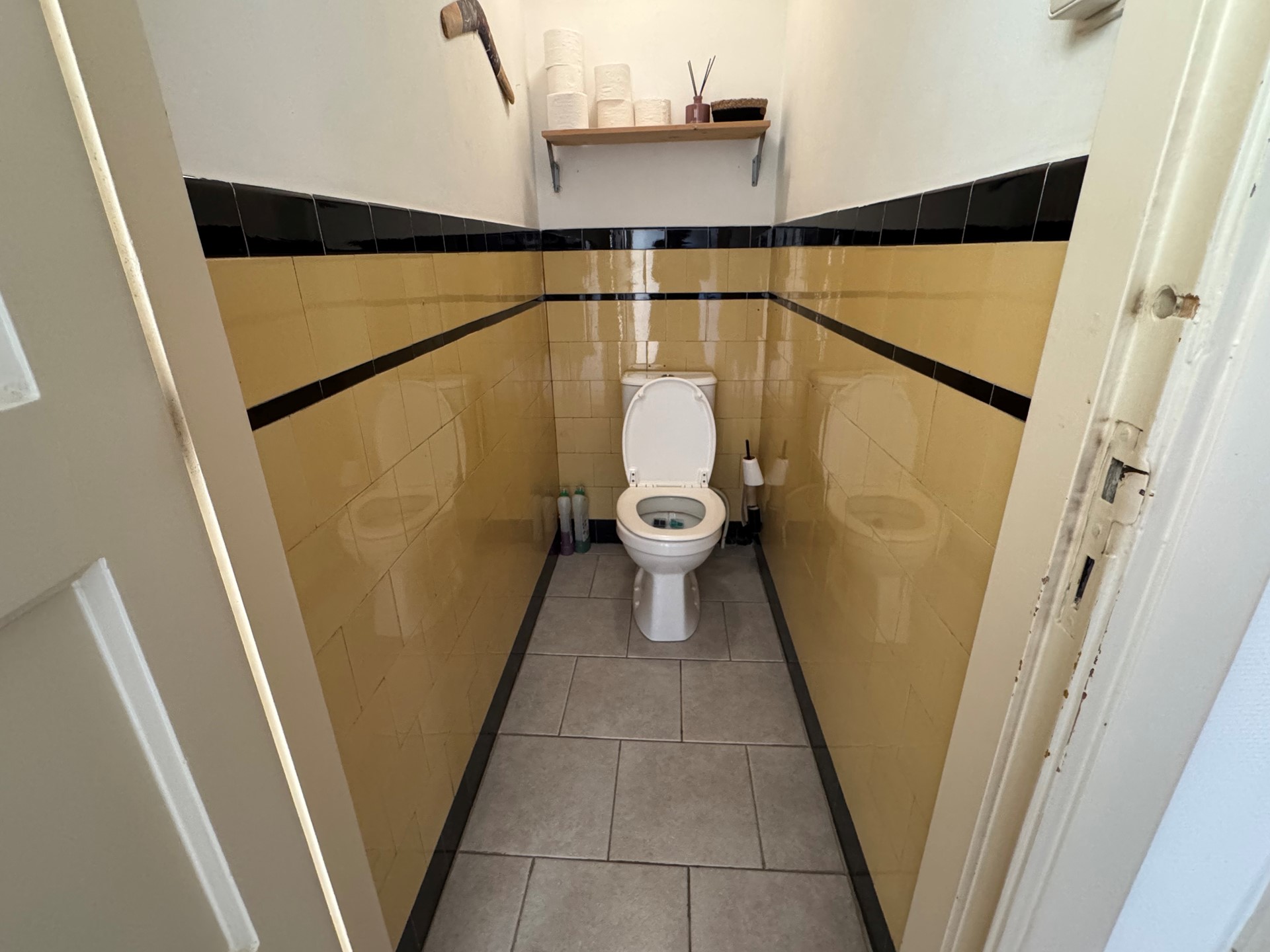 Het appartement beschikt over een septraat toilet. Het toilet is afgewerkt met authentieke tegels.