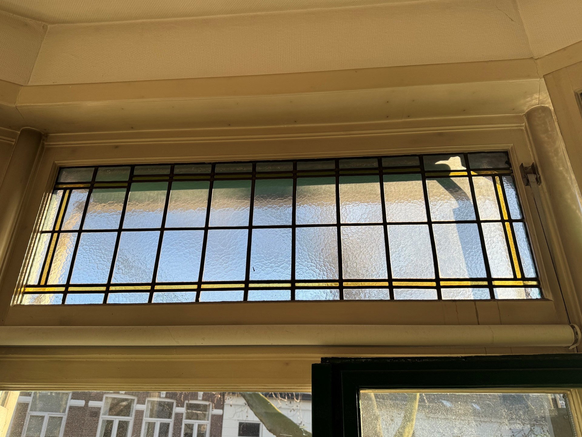 - Paneeldeuren en glas-in-lood ramen aanwezig;