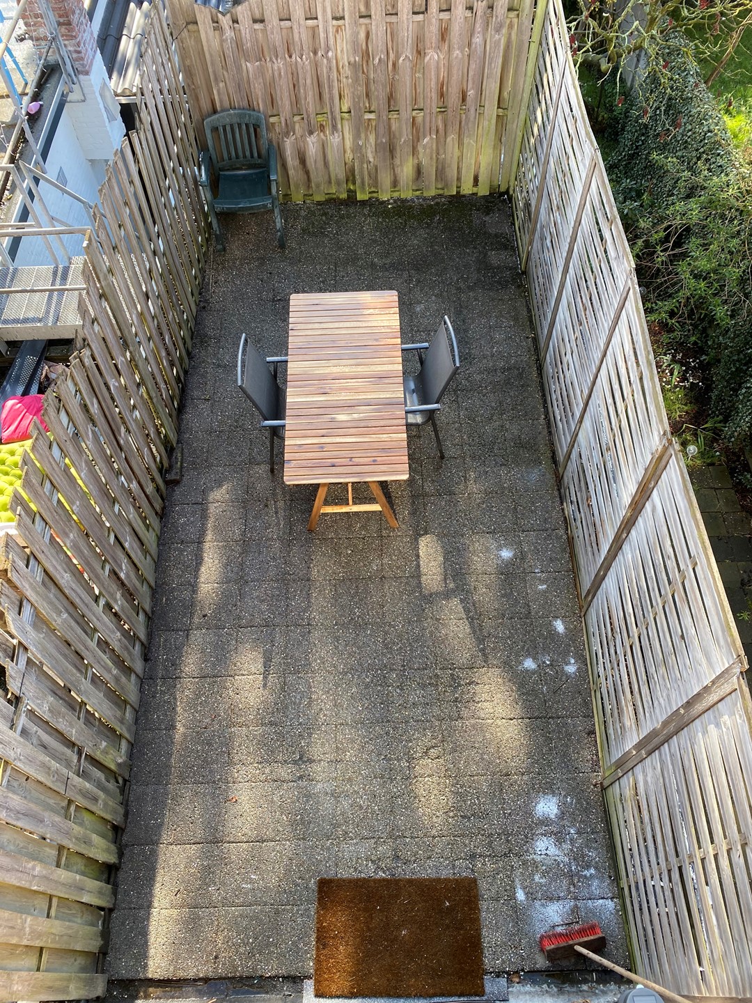 Ruim balkon aan de achterzijde van de woning, grenzend aan de keuken, gelegen op het zuidoosten.
